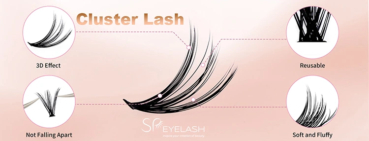 Tại SP Lông mi, lông mi cụm mà chúng tôi đã phát triển áp dụng công nghệ liên kết nhiệt sáng tạo để làm tóc bằng chồn chất lượng cao hoặc sợi tổng hợp thành các cụm hình người hâm mộ hoàn hảo. Sự khác biệt lớn nhất so với lông mi truyền thống là đáy sản phẩm của chúng tôi trải qua quá trình xử lý nhiệt đặc biệt, cho phép chúng được gắn an toàn và chắc chắn với lông mi tự nhiên mà không cần keo truyền thống.