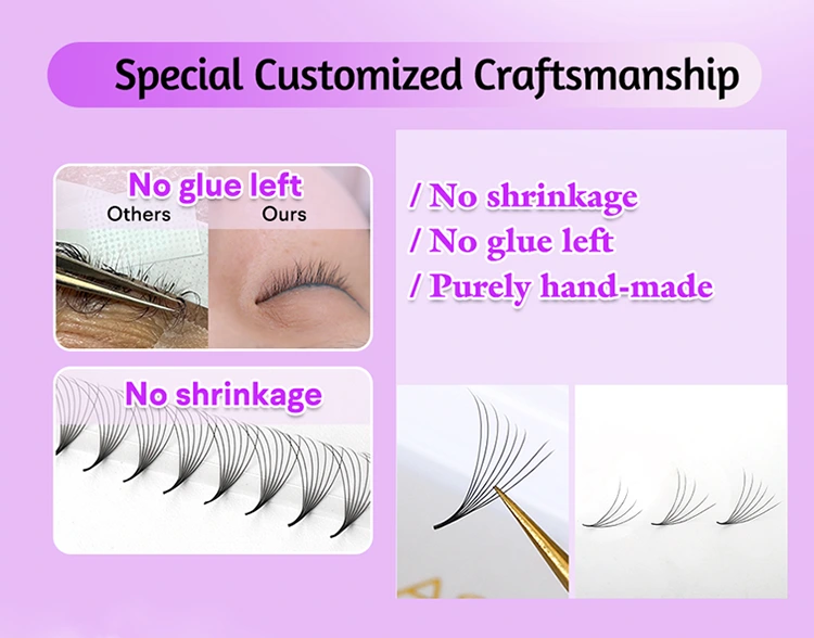 Độ chính xác và chất lượng thủ công: Lông mi thủ công SP Lông mi 500 người hâm mộ được làm từng cái một bởi các thợ thủ công chuyên nghiệp, thay vì thông qua máy móc hoặc khuôn. Mỗi quạt lỏng lẻo có một cơ sở rất mỏng, đảm bảo hiệu ứng âm lượng đối xứng và đẹp. Những người hâm mộ thủ công này hoàn toàn khác biệt với những người bình thường, mỗi người truyền tải tinh thần của các thợ thủ công chuyên nghiệp, cung cấp chất lượng và hiệu ứng vô song.