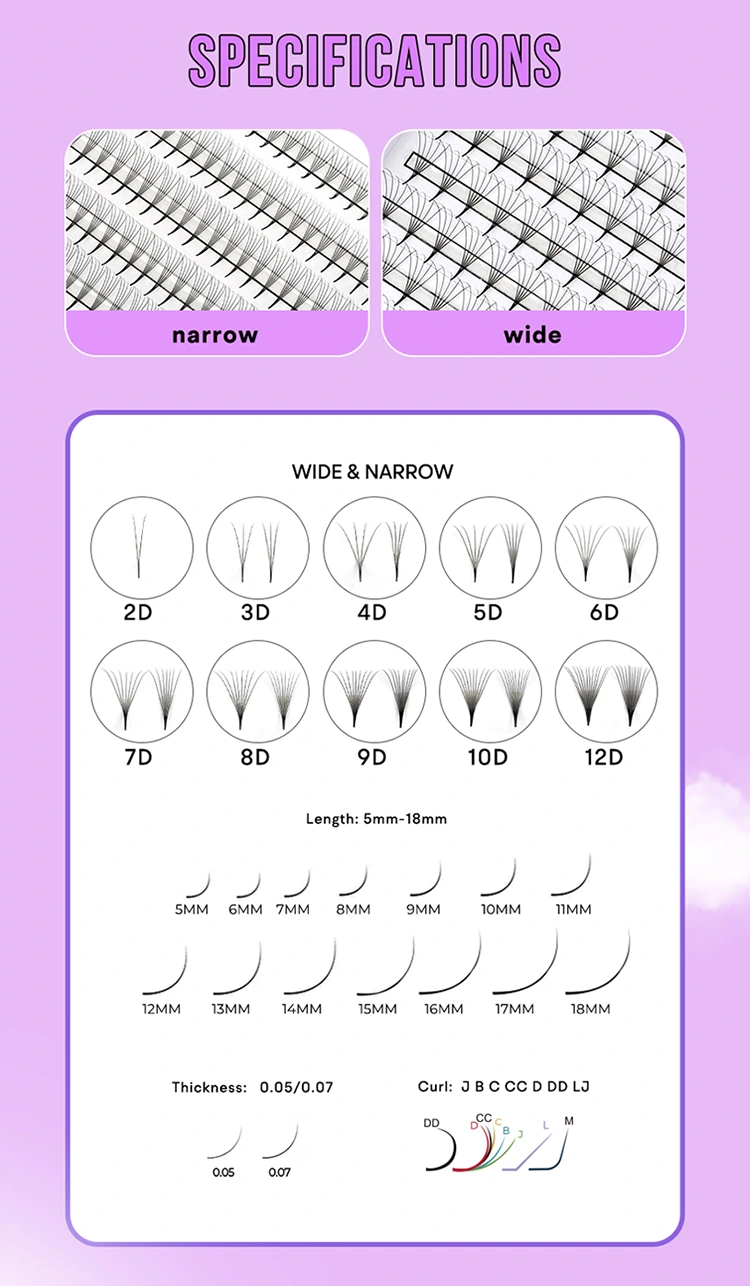 Mega Volume - Lượt và quyến rũ: Lash thủ công 500 người hâm mộ được làm bằng vật liệu PBT màu đen mờ, mang đến cho khách hàng một hiệu ứng mịn màng và đồ sộ, làm cho đôi mắt của họ nổi bật hơn. Những đôi lông mi giả này có thể làm cho mắt nổi bật và phù hợp để tạo ra vẻ ngoài bắt mắt. Hiệu ứng màu đen mờ mềm thêm một cảm giác sang trọng và tinh tế, phù hợp cho bất kỳ dịp nào