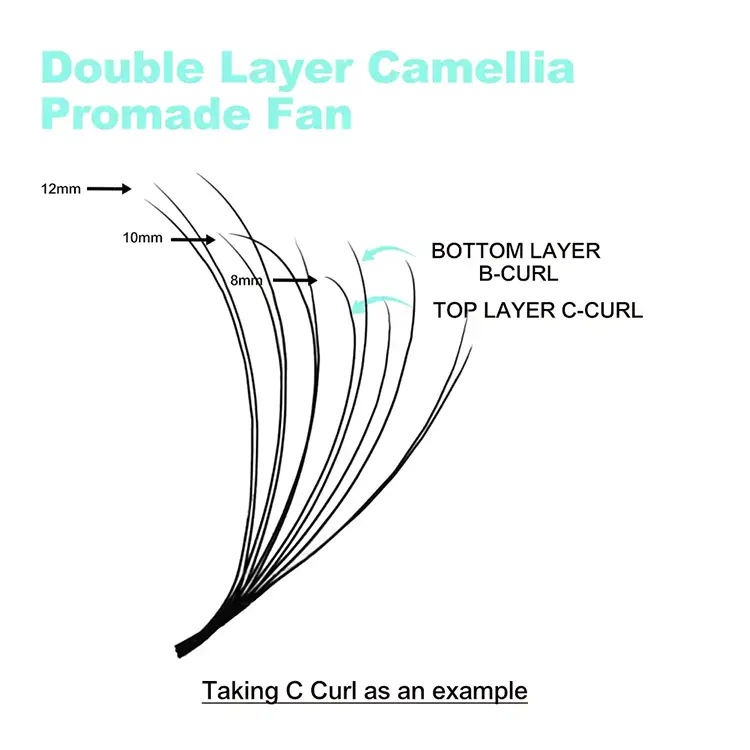 Quạt Camellia hai lớp 6D được làm bằng sợi PBT Hàn Quốc chất lượng cao, cung cấp độ mềm tuyệt vời và hiệu ứng mờ tự nhiên. Những lông mi này đã được chứng nhận bởi ISO/GMPC và bị thiếu không thường xuyên,