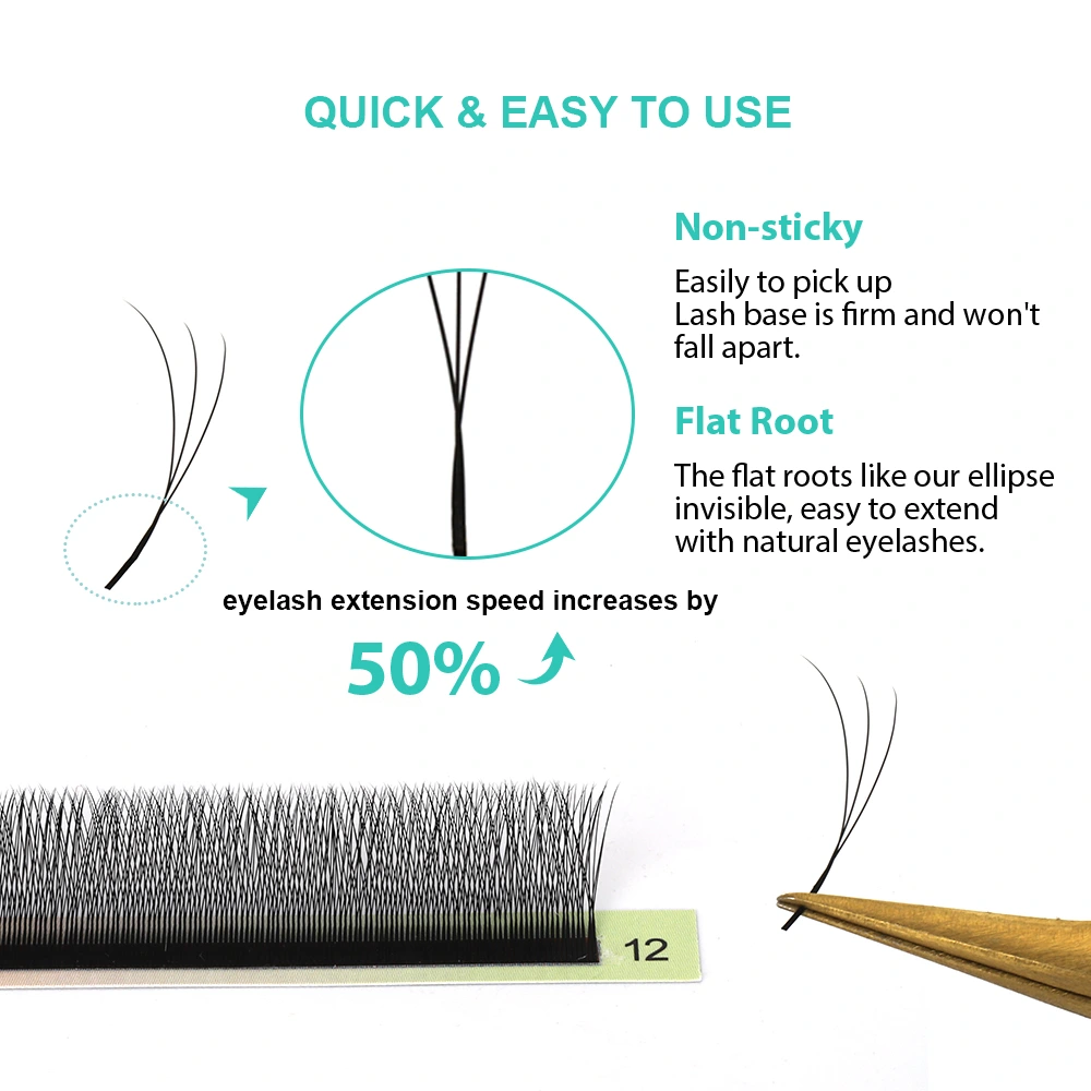 Sản phẩm này kết hợp một cơ sở quạt hẹp độc đáo với cấu trúc hình chữ Y chính xác. Mỗi cụm được dệt bằng tay từ 4 hàng mi bằng công nghệ được cấp bằng sáng chế, giữ lại khối lượng cổ điển của lông mi hình yy trong khi đạt được sự nhẹ nhàng và thoải mái chưa từng có.